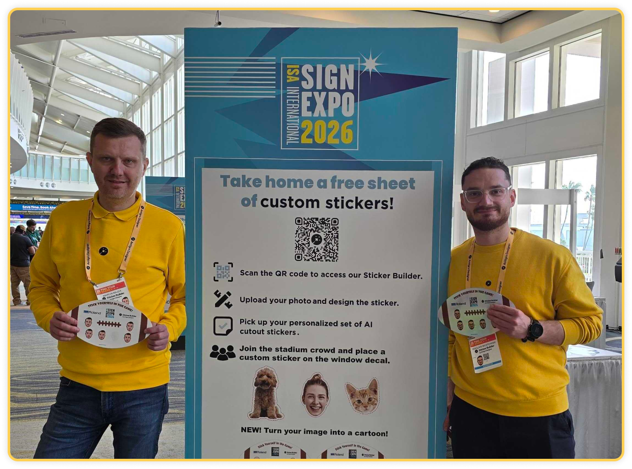 There was strong interest from participants throughout the event. That direct engagement reflected the broader focus of ISA Sign Expo, where attendees come to discover innovations, see live demos, and evaluate new ways to grow their business. A special highlight was the ISA Football Wall, where attendees placed stickers featuring their own likenesses, making the experience even more interactive and memorable while showing the fun, personal appeal of customized sticker products.