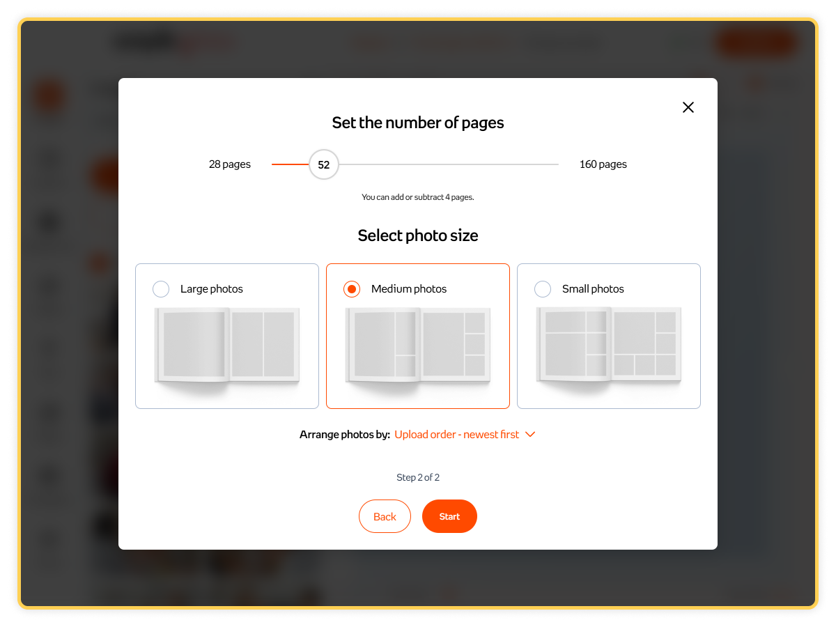 4. Chooses the preferred photo order (the customer can choose from: random; upload order-newest first; upload order-oldest first; date taken-newest first; date taken-oldest first)
